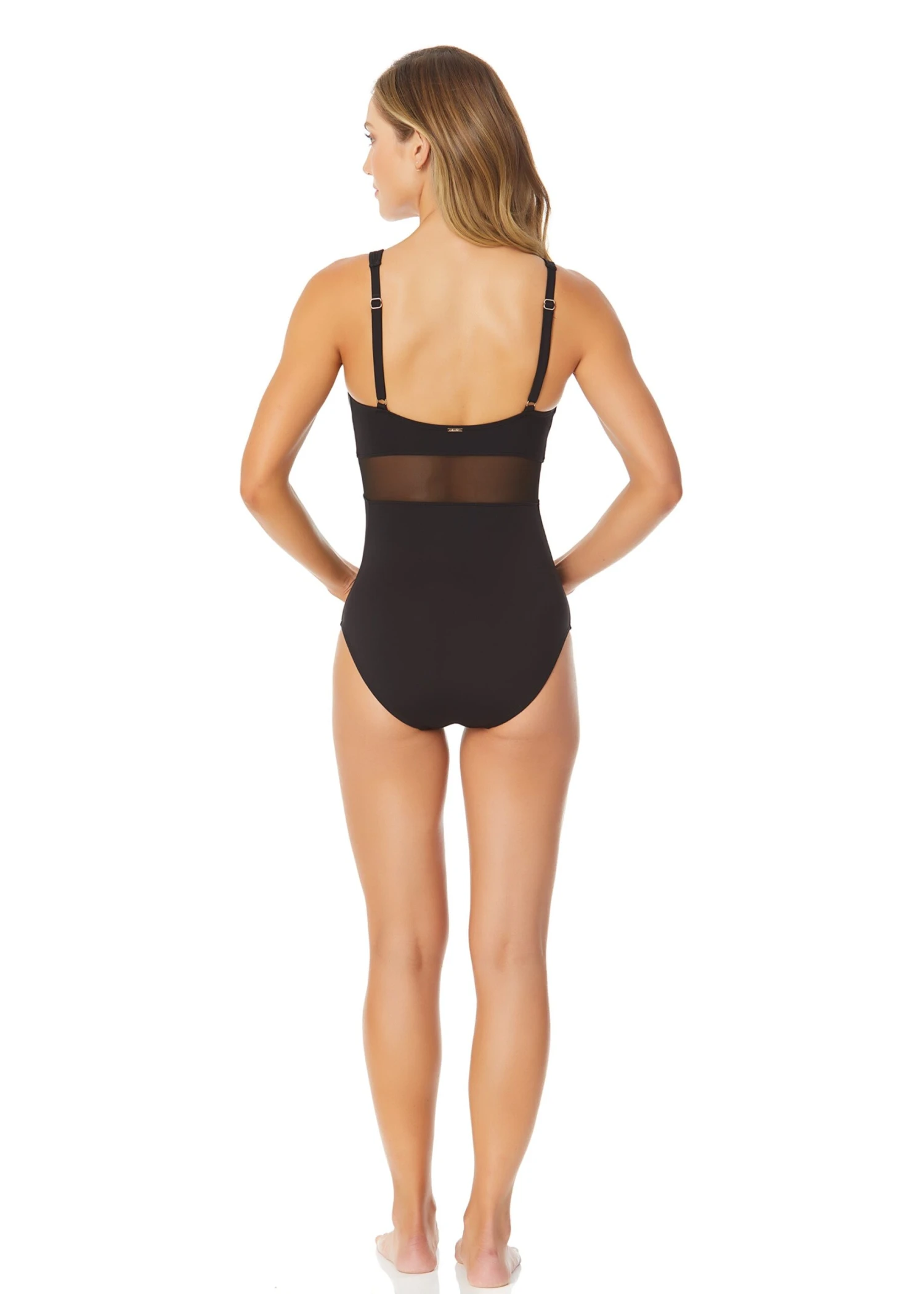 Show off your style with our Mesh Around U Ring Mesh Insert One Piece Swimsuit, a perfect blend of chic details and comfort. The sleek design features a U-shaped ring accent and mesh inserts that add texture and a contemporary touch. Removable soft cups and adjustable over-the-shoulder straps provide a customizable fit, keeping you comfortable all day. Offering just the right amount of coverage, this swimsuit is ideal for lounging poolside or enjoying a beach day. Pair it with an Anne Cole dress cover up for a polished summer look.